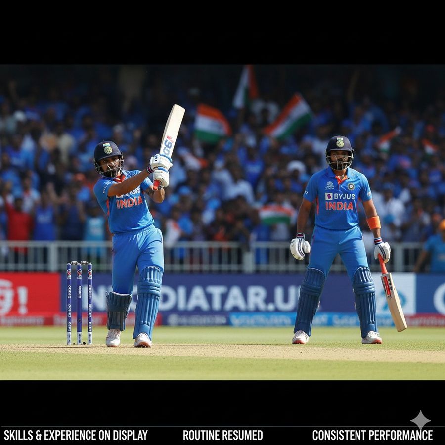 Virat Kohli and Rohit Sharma returned to the cricket field, showcasing their well-established skills and experience. The pair resumed their routine, demonstrating their consistent performance in the sport they excel in.